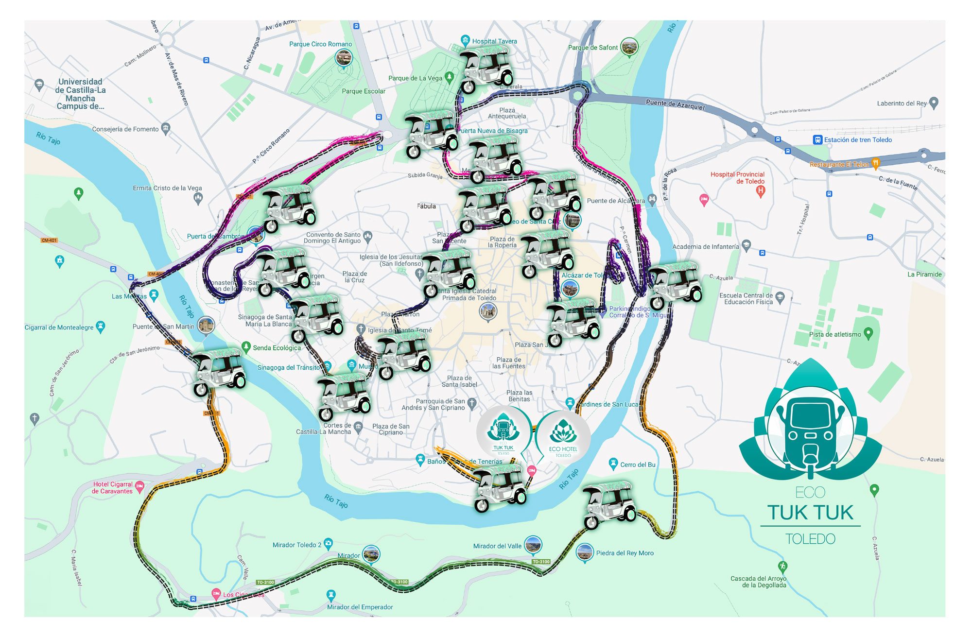 Toledo cuida a sus ciudadanos y al mundo eligiendo tuk tuks ecológicos. Inspirados por una energía positiva, hemos creado esta original idea, cuya misión es llevar a nuestros clientes de una manera ecológica y sostenible. Vehículos suaves, 100% eléctricos y libres de contaminación.
